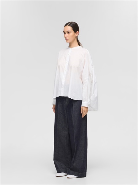 STYLE NO : M46 MODEL:176cm FREE TOPS:back gather wide shirtBOTTOMS:wide denim slacks