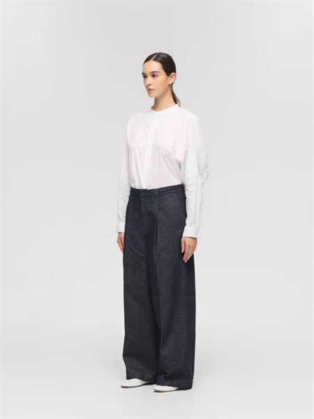 STYLE NO : M47 MODEL:176cm FREE TOPS:back gather wide shirtBOTTOMS:wide denim slacks