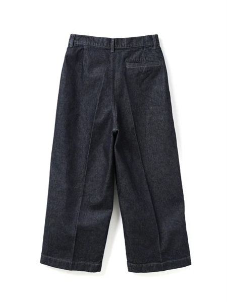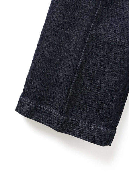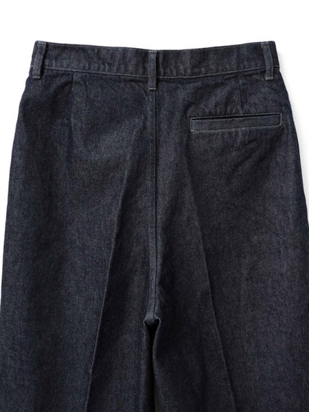 以帶有中線壓摺的西裝褲為設計基礎,俐落筆直的線條展現出優雅洗練的印象,是一款從休閒到正式造型都能靈活搭配的丹寧褲款。腰部內側設有抽繩設計,可進行細微的尺寸調整,兼具舒適性與實用性。採用日本岡山製的高品質13oz 丹寧布料,質地紮實,穿著時帶來安心且穩定的舒適感。同材質的外套(1-270030OW / compact denim JK)亦可搭配成套穿著。寬版丹寧西裝褲NO:1-260087OW