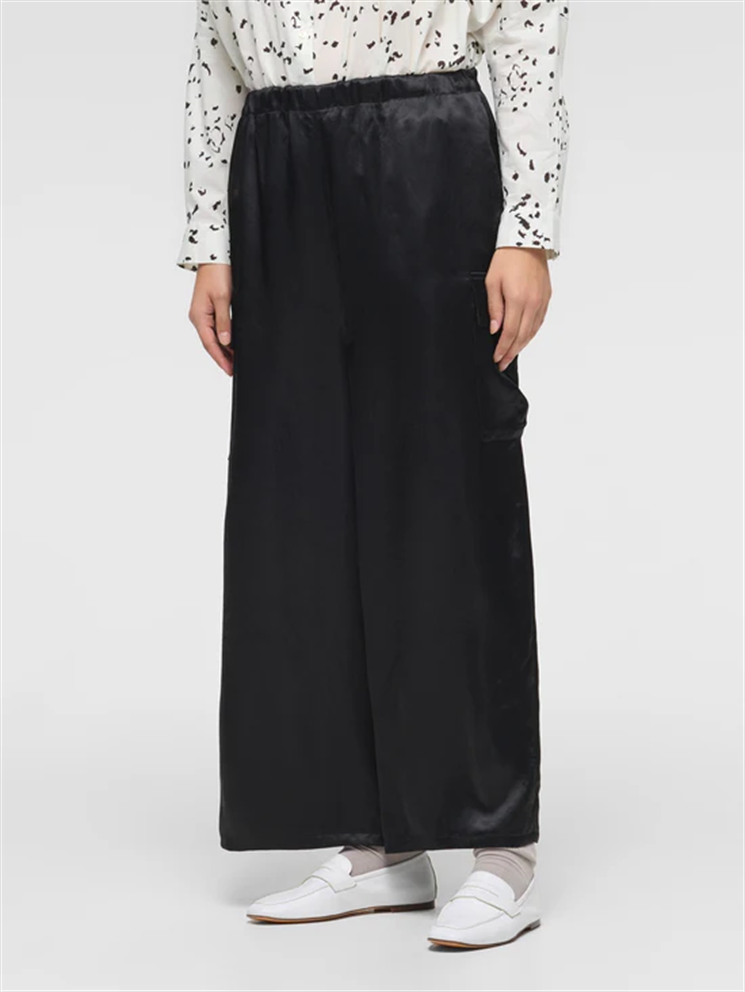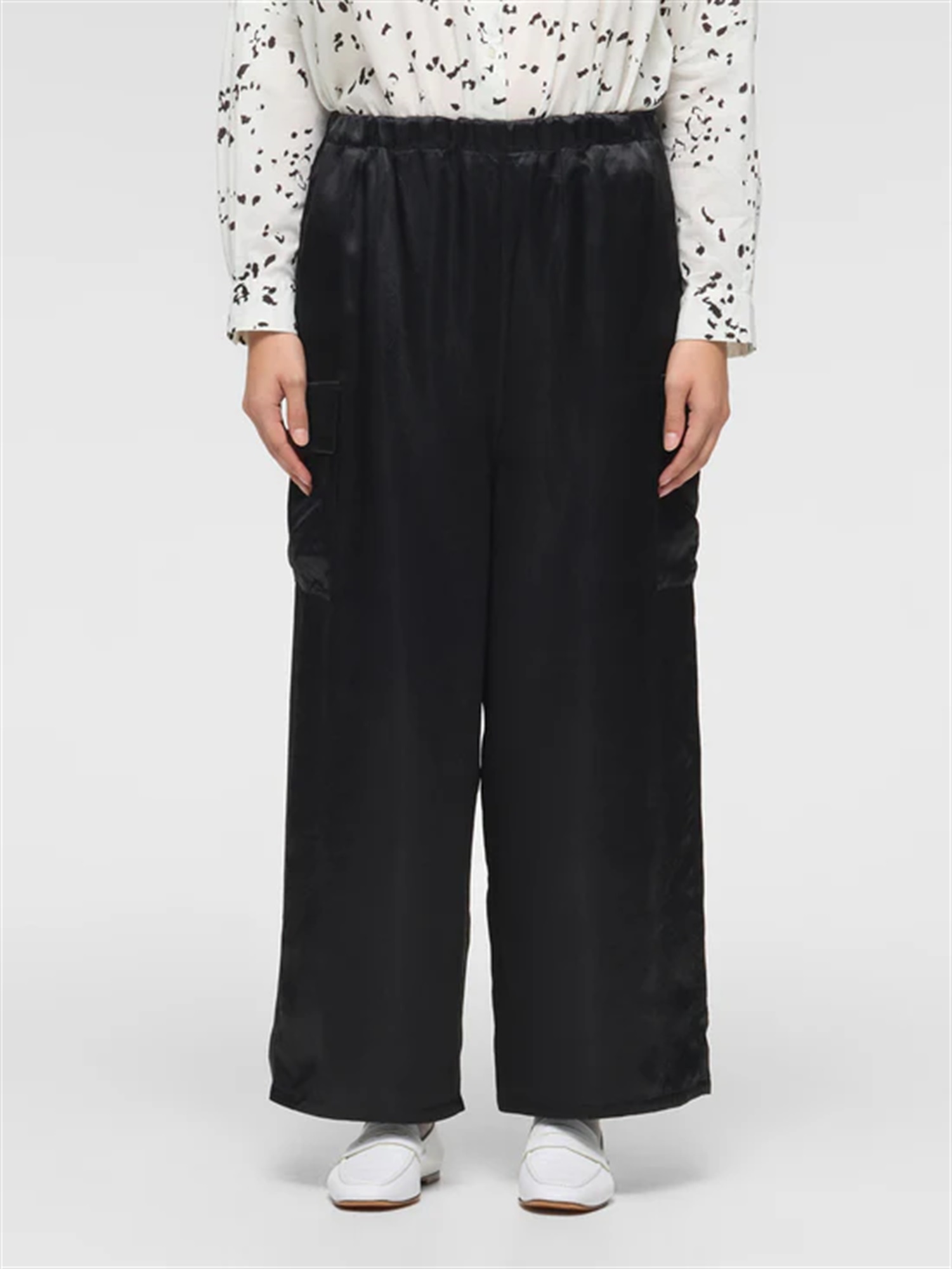 STYLE NO : M52 MODEL:176cm FREE TOPS:print back gather shirtBOTTOMS:satin cargo PT