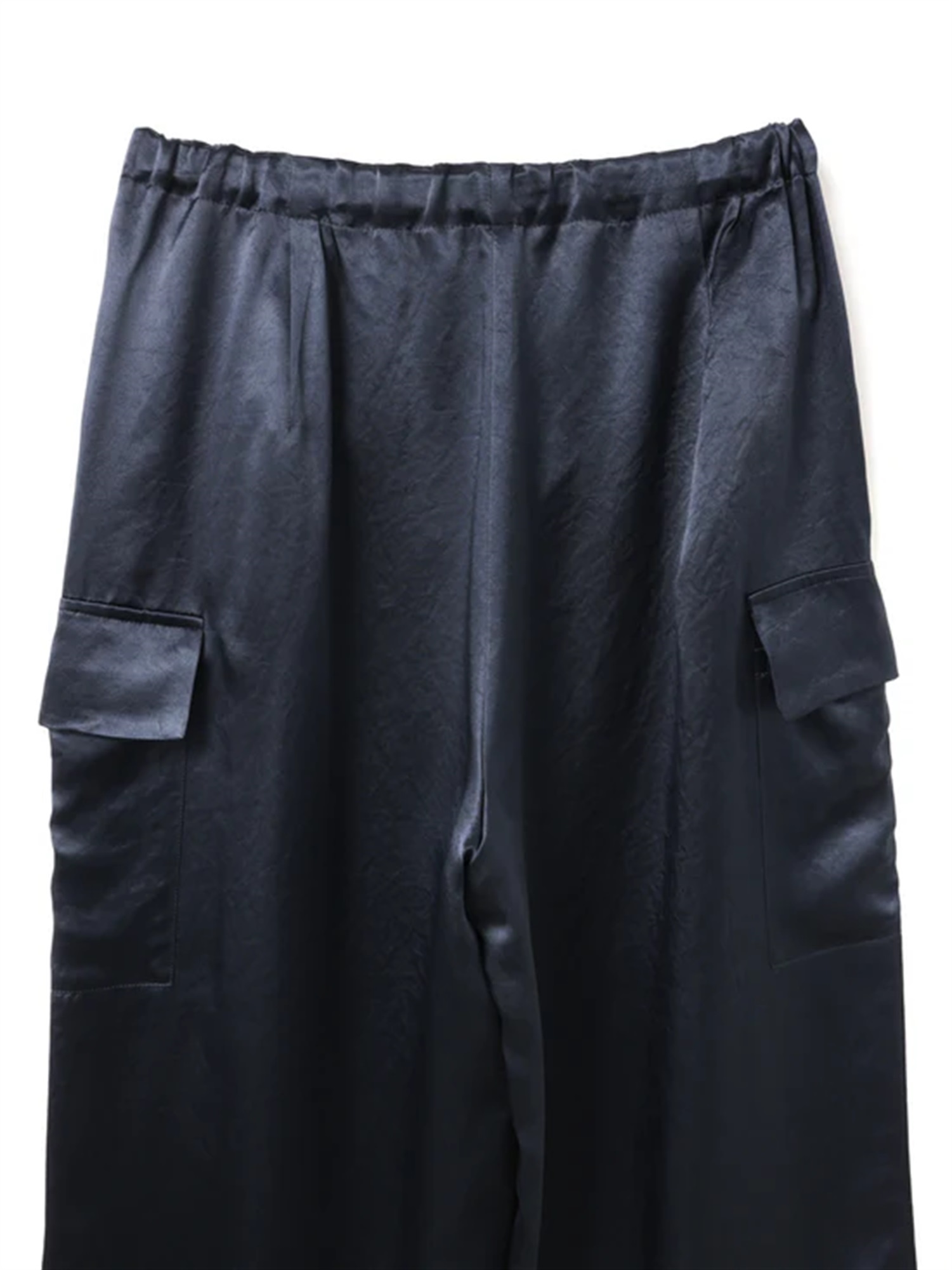 以高雅的緞面布料製做成的工裝系列長褲。兩側配置立體感的口袋設計成為整體造型上的亮點。緞面材質特有的細緻光澤與柔順親膚的質感,讓原本偏休閒的工裝設計也能穿出成熟優雅的氣質。腰部採用鬆緊帶與抽繩的設計可自由調整尺寸。適中的長度程現出寬褲自然的垂墜感,走動時更顯俐落有型。亦可與同系列襯衫(1-230130 / satin cargo PT)成套穿著。 (1-230130 / satin work shirt)也推薦成套穿搭。緞面工裝NO:1-260089