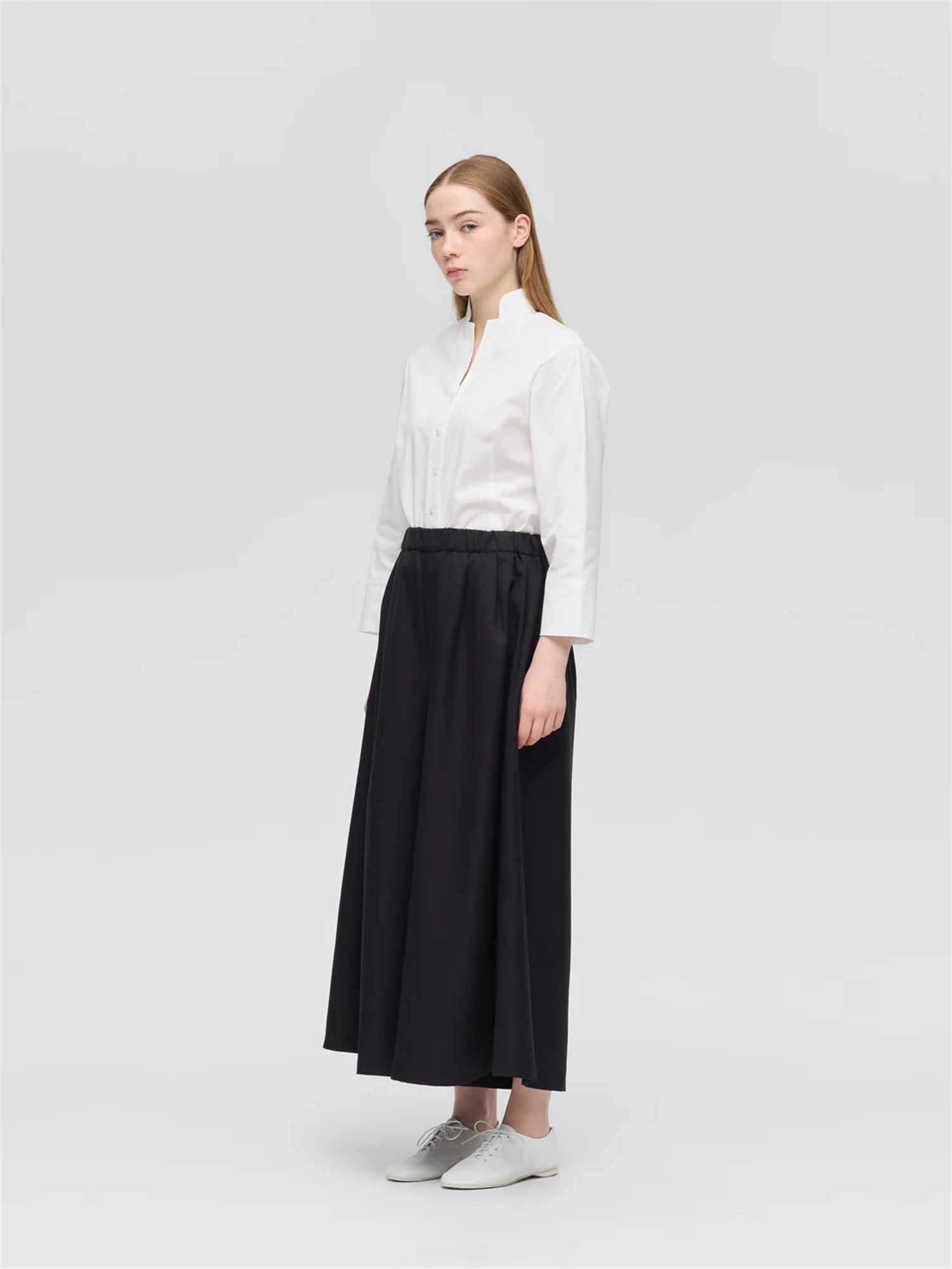 STYLE NO : B31 MODEL:173cm FREE TOPS:stand collar short shirtBOTTOMS:wide flare easy PT