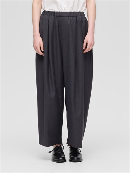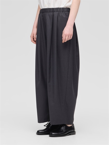 mizuiro ind 將男裝風格的西裝?,以寬鬆、寬版的繭型剪裁重新演繹,打造出兼具中性率性與柔和女人味的?款。豐富的褶皺搭配垂墜面料,打造令人印象深刻、動感十足的立體輪廓。 ?長為全長設計,錐形的窄口??對身形較嬌小者也非常友善,能自然地在?踝處堆疊出層次感,展現隨性又有型的風格。 腰部為鬆緊設計,?含可調節抽繩,粗繩垂掛的穿法也增添一絲休閒感。採用平滑的混紡材質,手感柔軟,具有良好的彈性與延展性,穿著舒適自在。混有人造絲成分,即使在炎熱季節也能帶來清涼觸感。可手洗,日常保養方便。 附側邊口袋設計,實用性佳。