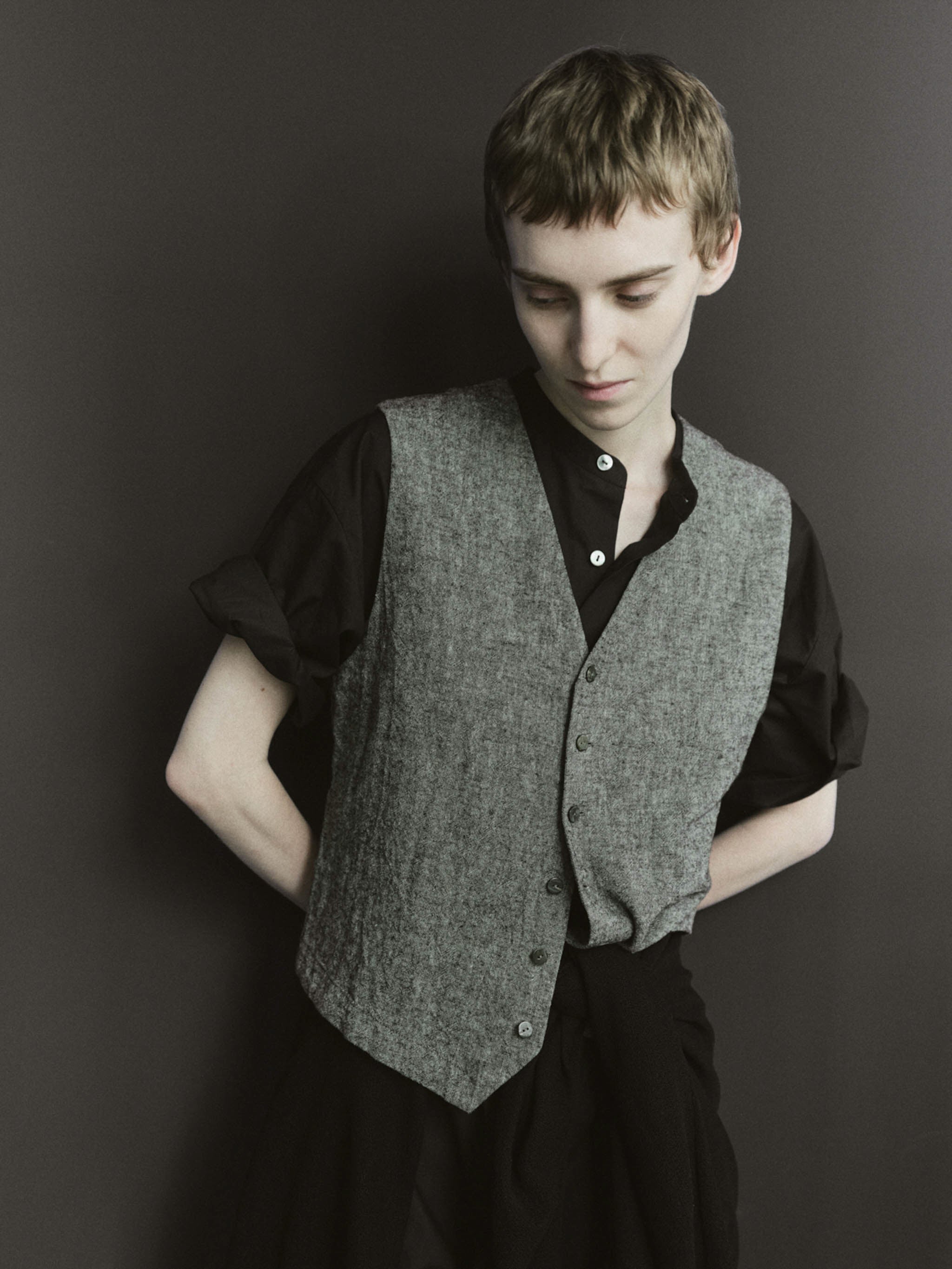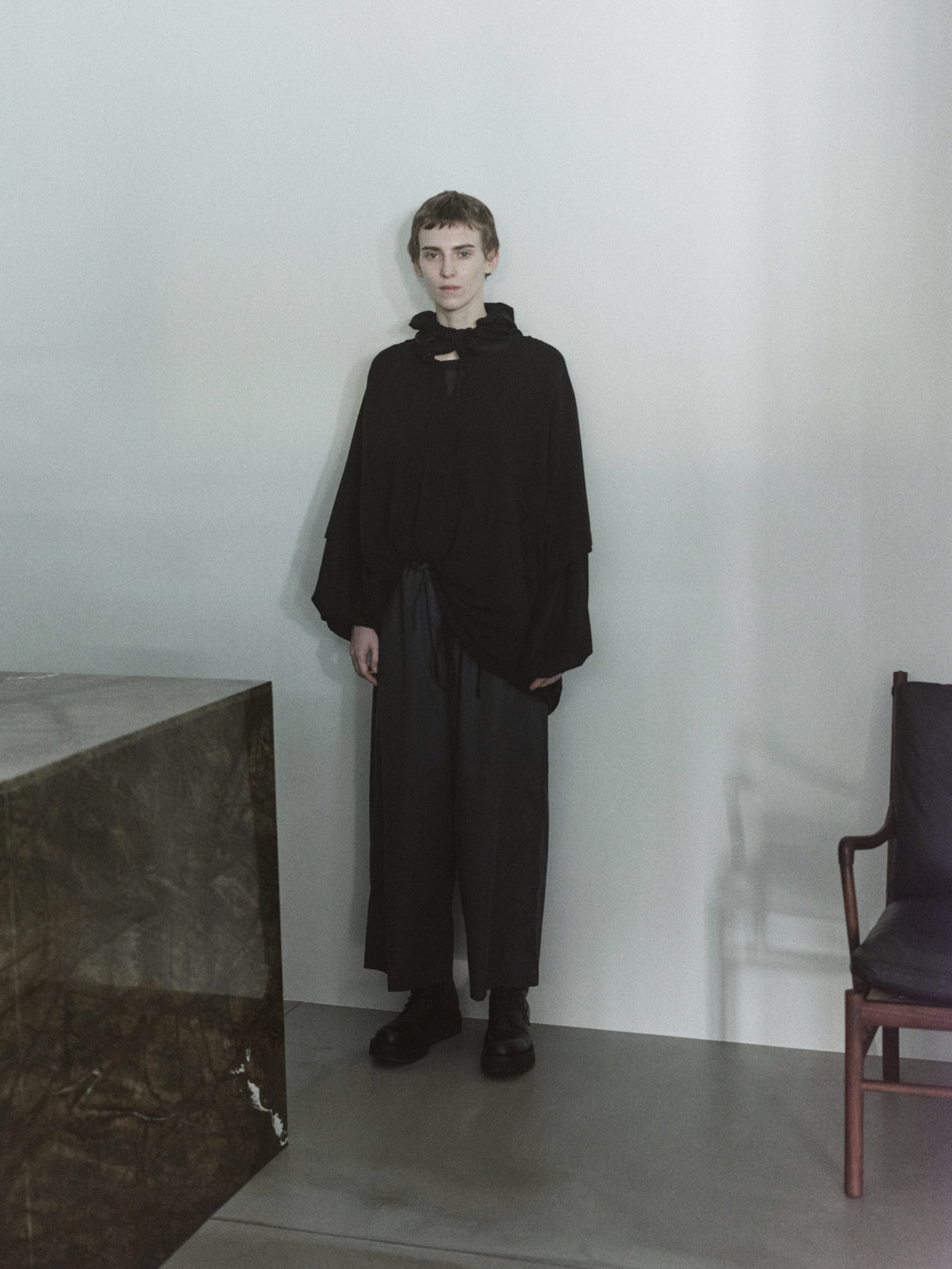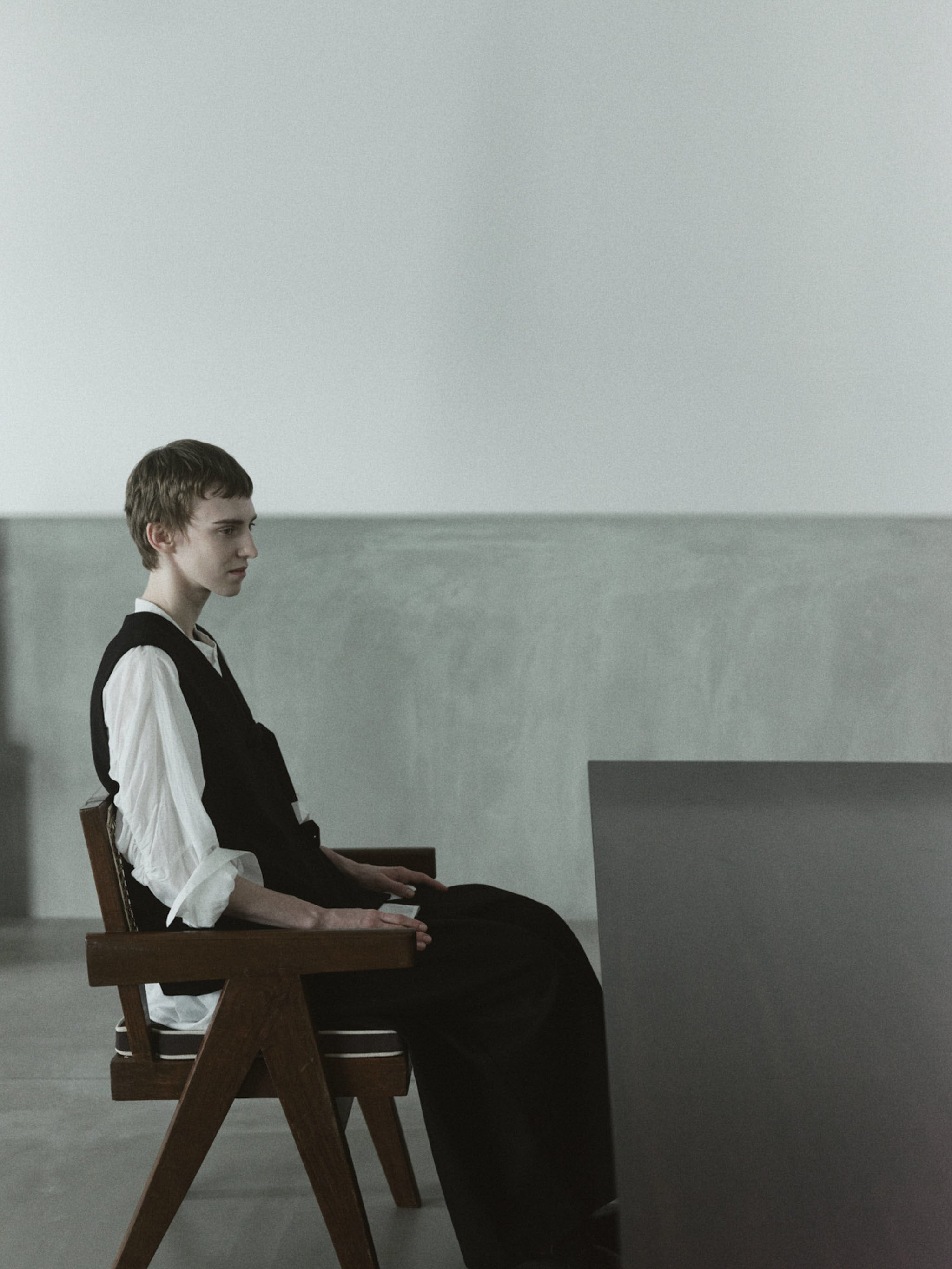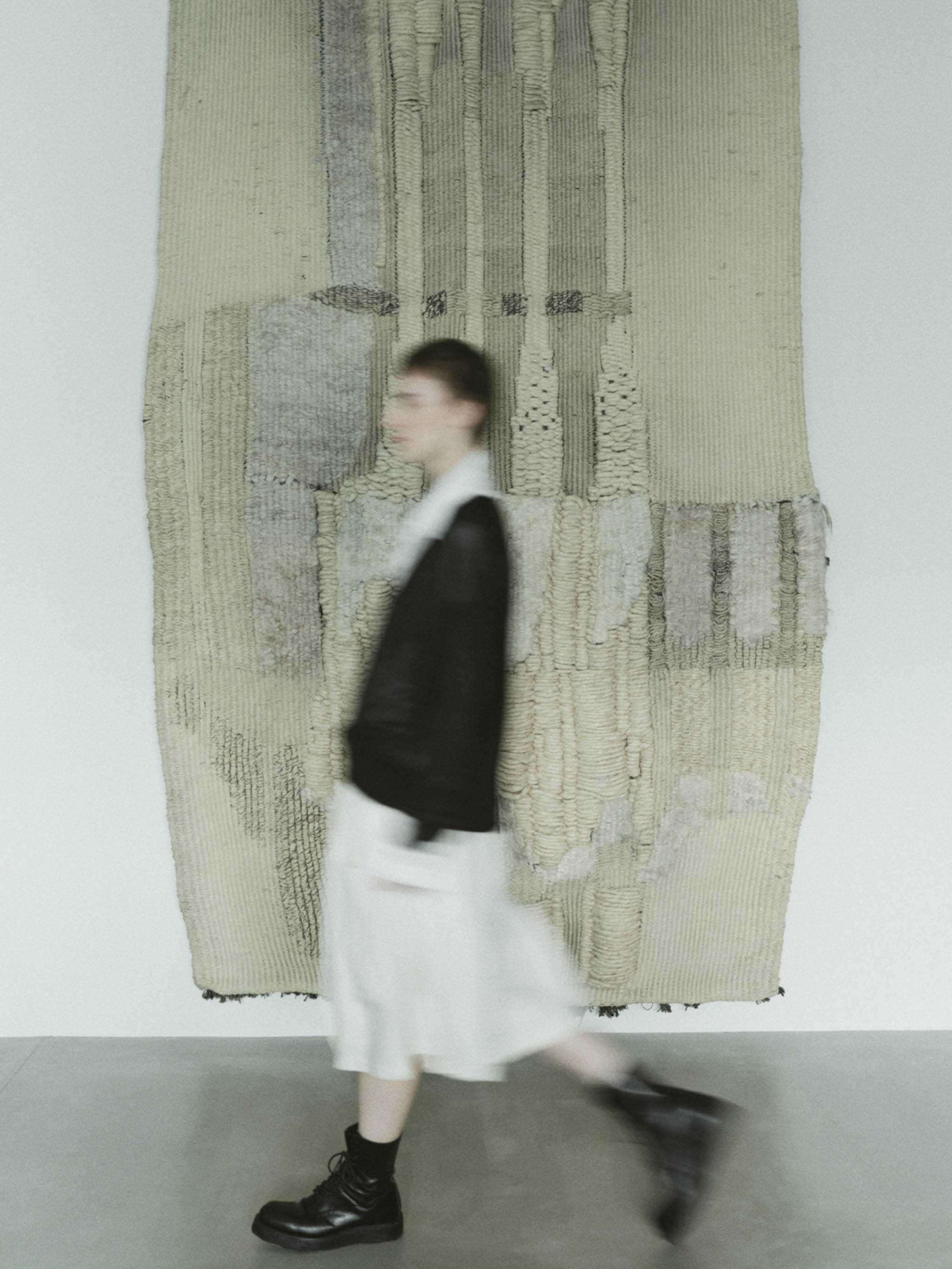 輕盈如空氣般的襯衫,搭配帶有視覺體量的灰色同調色系款式。 柔軟與厚重的交錯,細膩的陰影悄然流動。