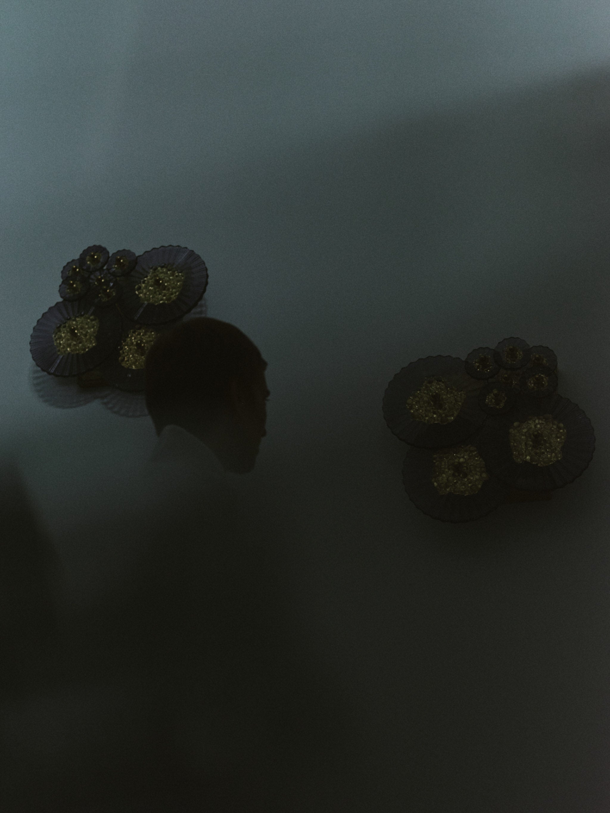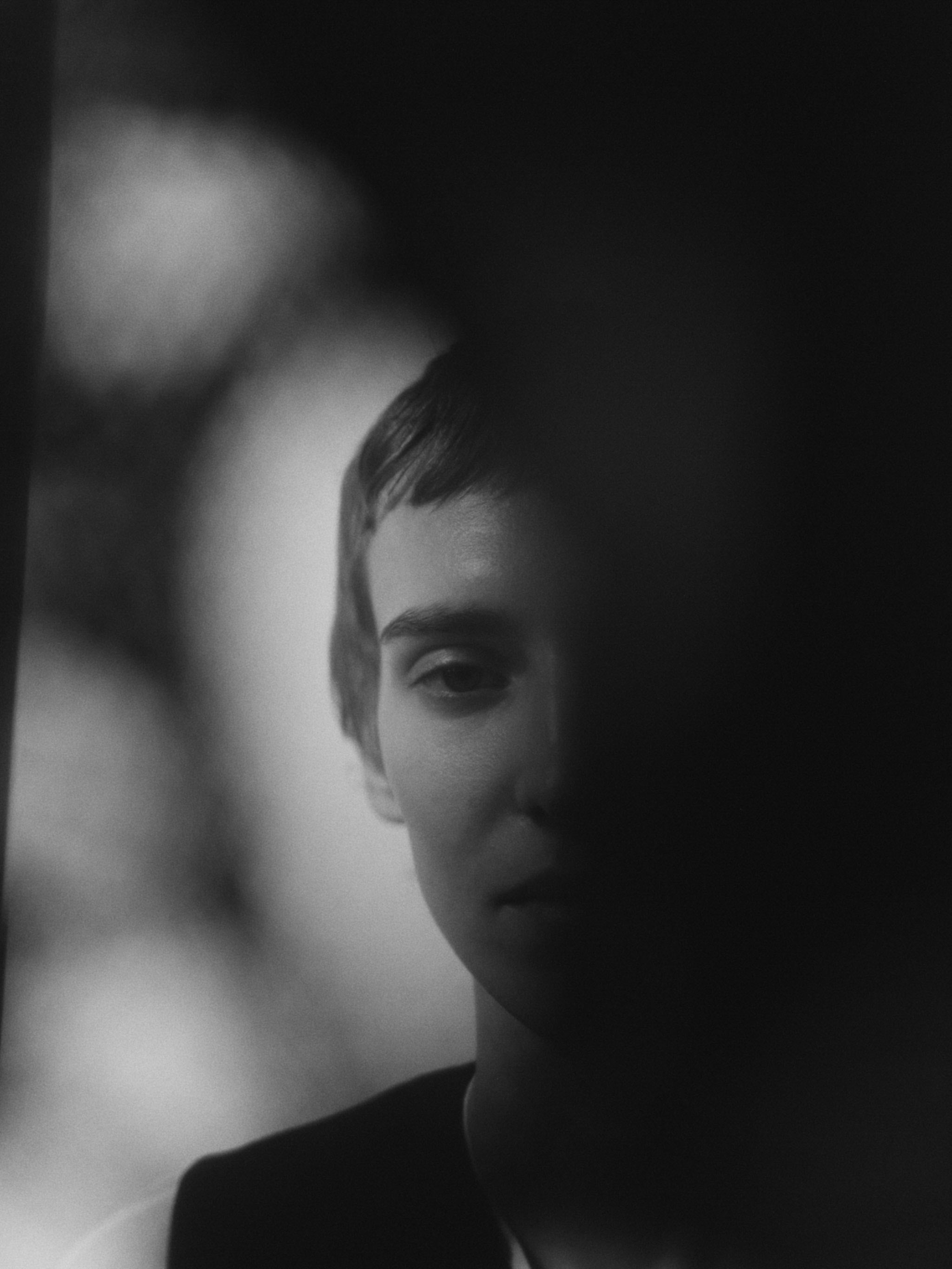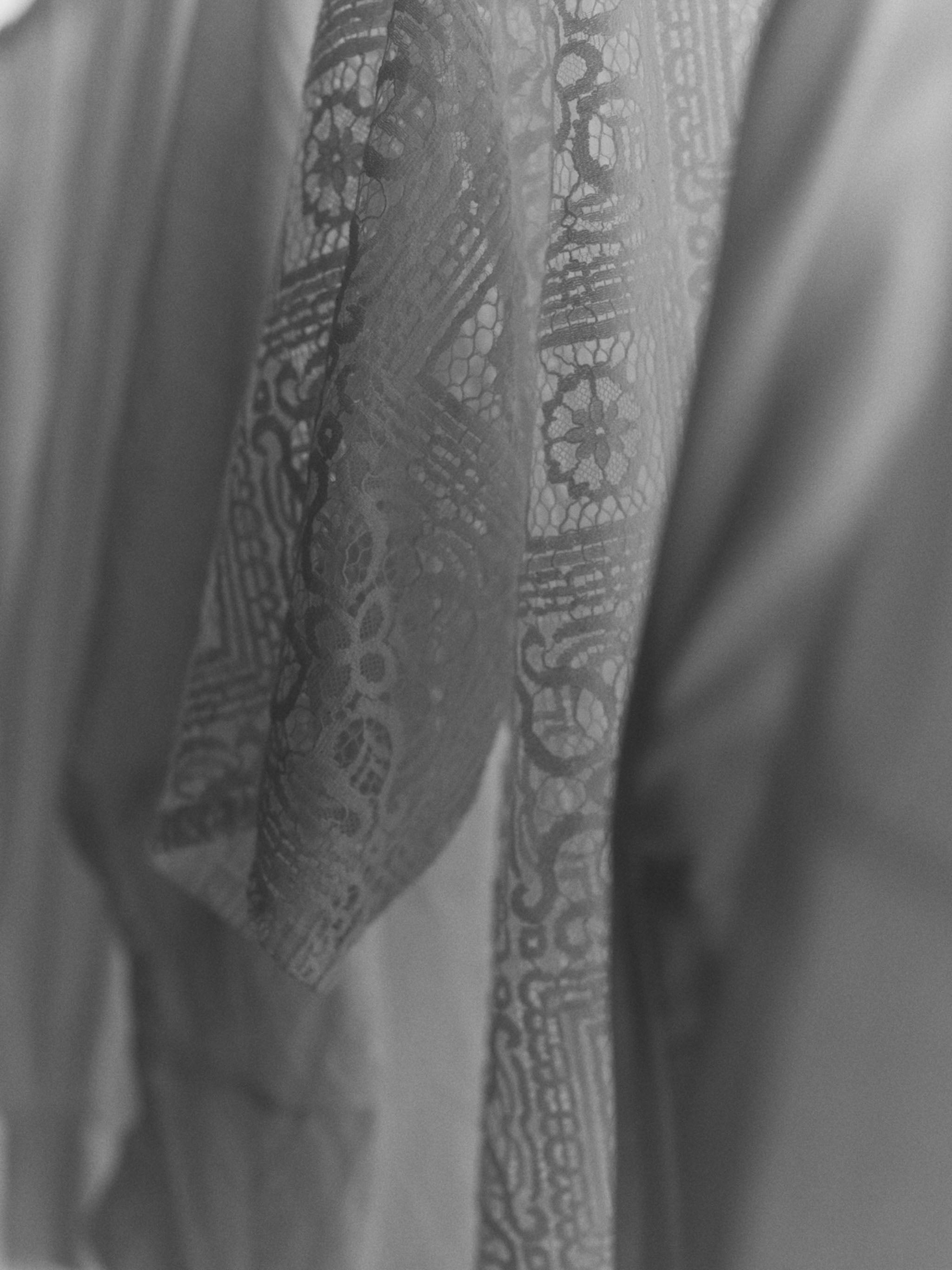 柔軟地垂落的黑色薄紗,與優雅地舒展的白色重疊。 不刻意的對比所營造出的是一種極其優雅的輪廓。